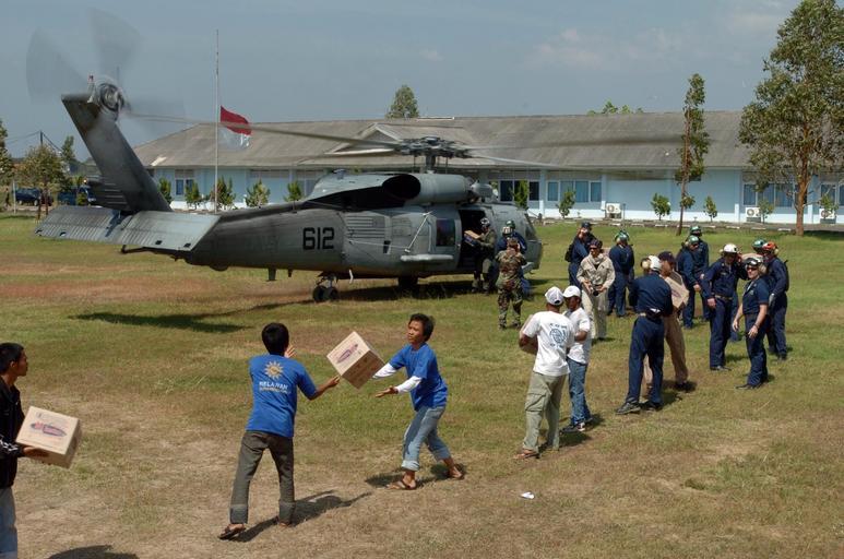 | Keywords: US Navy 050107-N-7586B-127 Sailors from Carrier Air Wing Two (CVW-2) and USS Abraham Lincoln (CVN 72) help distribute food and water along side Indonesian citizens.jpg en Banda Aceh Sumatra Indonesia Jan 7 2005 - Sailors from Carrier Air Wing Two CVW-2 and USS Abraham Lincoln CVN 72 help distribute food and water along side Indonesian citizens at Sultan Iskandar Muda Air Force Base Muda Air Base Helicopters assigned to Carrier Air Wing Two CVW-2 and Sailors from USS Abraham Lincoln CVN 72 are supporting Operation Unified Assistance the humanitarian operation effort in the wake of the Tsunami that struck South East Asia The Abraham Lincoln Carrier Strike Group is currently operating in the Indian Ocean off the waters of Indonesia and Thailand U S Navy photo by Photographer s Mate 1st Class Bart A Bauer RELEASED 2005-01-07 050107-N-7586B-127 Navy http //www navy mil/view_image asp id 20362 U S Navy photo by Photographer s Mate 1st Class Bart A Bauer PD-USGov-Military-Navy Banda Aceh |