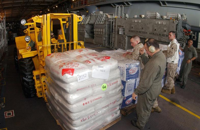 | Keywords: US Navy 050110-N-3970R-016 U.S. Marines load relief supplies aboard a Landing Craft Air Cushion (LCAC) in the well deck.jpg en Indian Ocean Jan 10 2005 - U S Marines load relief supplies aboard a Landing Craft Air Cushion LCAC in the well deck aboard the amphibious assault ship USS Bonhomme Richard LHD 6 LCAC's assigned to Assault Craft Unit Five ACU-5 assigned to Bonhomme Richard delivered 34 000 pounds of aid to the Tsunami stricken city of Meulaboh on the island of Sumatra Indonesia The Bonhomme Richard Expeditionary Strike Group is currently operating in the Indian Ocean off the waters of Indonesia and Thailand in support of Operation Unified Assistance the humanitarian operation effort in the wake of the Tsunami that struck South East Asia U S Navy photo by Photographer's Mate 3rd Class Jennifer Rivera RELEASED 2005-01-10 050110-N-3970R-016 Navy http //www navy mil/view_image asp id 20469 U S Navy photo by Photographer's Mate 3rd Class Jennifer Rivera PD-USGov-Military-Navy Landing Craft Air Cushion Aboard USS Bonhomme Richard LHD-6 Military forklifts Well decks |