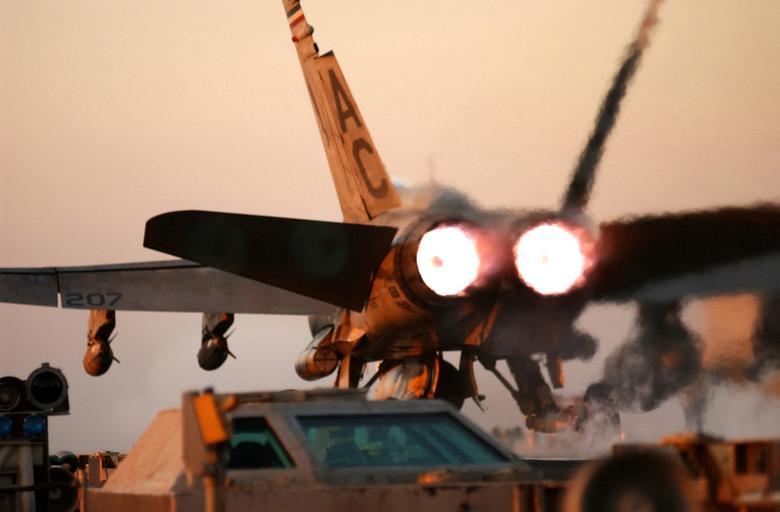 Keywords: US Navy 050113-N-6363M-029 An F-A-18A- Hornet launches from the flight deck aboard USS Harry S. Truman (CVN 75).jpg en Persian Gulf Jan 13 2005 An F/A-18A+ Hornet assigned to the Silver Eagles of Marine Fighter Attack Squadron One One Five VMFA-115 launches from the flight deck aboard USS Harry S Truman CVN 75 The Nimitz-class aircraft carrier and her embarked Carrier Air Wing Three CVW-3 are providing close air support and conducting intelligence surveillance and reconnaissance ISR missions over Iraq The Truman Carrier Strike Group is on a regularly scheduled deployment in support of the Global War on Terrorism U S Navy photo by Photographer s Mate Airman Philip V Morrill RELEASED 2005-01-13 050113-N-6363M-029 Navy http //www navy mil/view_image asp id 20797 U S Navy photo by Photographer s Mate Airman Philip V Morrill PD-USGov-Military-Navy F/A-18A Hornet on flight decks Aboard USS Harry S Truman CVN-75 F/A-18 Hornet aircraft carrier launches Aircraft using afterburning |