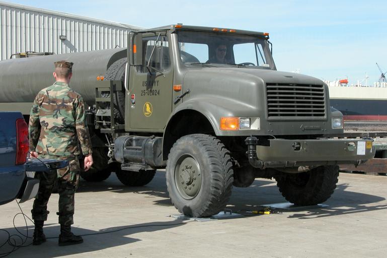 View Original:US_Navy_050124-N-4397B-001_A_Seabee,_assigned_to_Naval_Mobile_Construction_Battalion_One_(NMCB-1),_weighs_a_water_truck.jpg (2560x1704)
