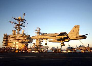 Keywords: US Navy 050127-N-4308O-115 An F-A-18A- Hornet assigned to the Silver Eagles of Marine Strike Fighter Attack Squadron One One Five (VMFA-115) prepares to make an arrested landing.jpg en Persian Gulf Jan 27 2005 - An F/A-18A+ Hornet assigned to the Silver Eagles of Marine Strike Fighter Attack Squadron One One Five VMFA-115 prepares to make an arrested landing on the flight deck of the Nimitz-class aircraft carrier USS Harry S Truman CVN 75 Carrier Air Wing Three CVW-3 is embarked aboard Harry S Truman and is providing close air support and conducting intelligence surveillance and reconnaissance missions over Iraq The Truman Carrier Strike Group and CVW-3 are on a regularly scheduled deployment in support of the Global War on Terrorism U S Navy photo by Photographer s Mate Airman Ryan O'Connor RELEASED 2005-01-27 050127-N-4308O-115 Navy http //www navy mil/view_image asp id 21291 U S Navy photo by Photographer s Mate Airman Ryan O'Connor PD-USGov-Military-Navy F/A-18A Hornet on flight decks Aboard USS Harry S Truman CVN-75 F/A-18 Hornet aircraft carrier landings |