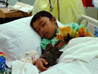 Keywords: US Navy 050214-N-0357S-060 An 11-year old Indonesian boy rests in a hospital bed in the Intensive Care Unit aboard the Military Sealift Command (MSC) hospital ship USNS Mercy (T-AH 19).jpg en Indian Ocean Feb 14 2005 - An 11-year old Indonesian boy rests in a hospital bed in the Intensive Care Unit aboard the Military Sealift Command MSC hospital ship USNS Mercy T-AH 19 The boy was found floating in the ocean two days after the tsunami struck his home of Banda Aceh on the island of Sumatra Indonesia Shortly after Mercy arrived on station off the coast of Banda Aceh the boy was flown to the ship to receive treatment for an acute case of aspiration pneumonia He is expected to make a full recovery Mercy is serving as an enabling platform to assist humanitarian operations ashore in ways that host nations and international relief organization find useful Mercy is currently off the waters of Indonesia in support of Operation Unified Assistance the humanitarian relief effort to aid the victims of the tsunami that struck Southeast Asia U S Navy photo by Journalist 1st Class Joshua Smith RELEASED 2005-02-14 050214-N-0357S-060 Navy http //www navy mil/view_image asp id 21888 U S Navy photo by Journalist 1st Class Joshua Smith PD-USGov-Military-Navy People in bed Boys of Indonesia Hospital beds 11-year-old human males Intensive-care units |