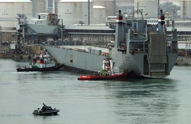 Keywords: US Navy 050224-N-6932B-113 A patrol boat escorts the Ready Reserve Force roll-on-roll-off ship MV Cape Texas (T-AKR 112) into the Port of Ash Shuaiba, Kuwait.jpg en Ash Shuaiba Kuwait Feb 24 2005 - A patrol boat assigned to Inshore Boat Unit Two Four IBU-24 Naval Coastal Warfare NCW Squadron Two Five escorts the Ready Reserve Force roll-on/roll-off ship MV Cape Texas T-AKR 112 into the Port of Ash Shuaiba Kuwait NCW Squadron 25 is currently on a regularly scheduled deployment defending U S and coalition assets transiting the North Persian Gulf in support of Operation Iraqi Freedom OIF U S Navy photo by Photographer's Mate 1st Class Richard J Brunson RELEASED 2005-02-24 050224-N-6932B-113 Navy http //www navy mil/view_image asp id 22406 U S Navy photo by Photographer's Mate 1st Class Richard J Brunson PD-USGov-Military-Navy United States Navy in Ash Shuaybah Kuwait Inshore Boat Units |