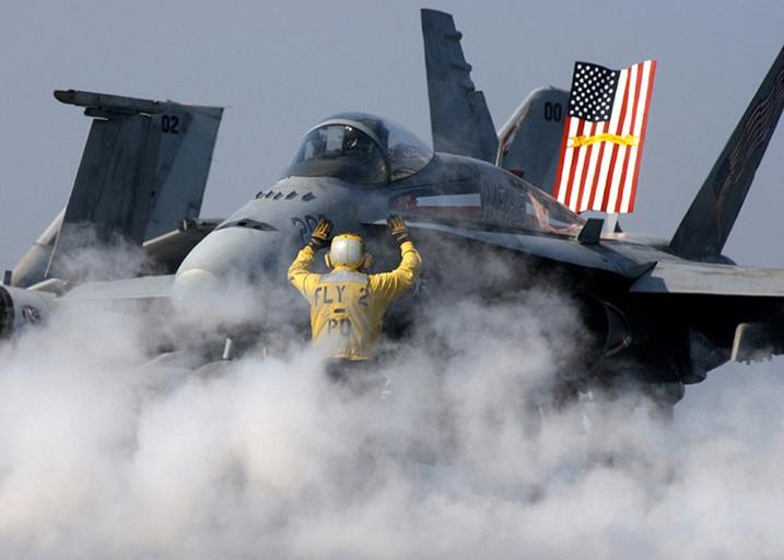 | Keywords: US Navy 050301-N-2984R-102 The pilot of an F-A-18A- Hornet conducts a check of his speed break prior to launch aboard the Nimitz-class aircraft carrier USS Harry S. Truman (CVN 75).jpg en Persian Gulf Mar 1 2005 - The pilot of an F/A-18A+ Hornet assigned to the Silver Eagles of Marine Fighter Attack Squadron One One Five VMFA-115 conducts a check of his speed break prior to launch aboard the Nimitz-class aircraft carrier USS Harry S Truman CVN 75 Carrier Air Wing Three CVW-3 is embarked aboard Truman and is providing close air support and conducting intelligence surveillance and reconnaissance over Iraq The Truman Carrier Strike Group is on a regularly scheduled deployment in support of the Global War on Terrorism U S Navy photo by Photographer's Mate Airman Ricardo J Reyes RELEASED 2005-03-01 050301-N-2984R-102 Navy http //www navy mil/view_image asp id 22562 U S Navy photo by Photographer's Mate Airman Ricardo J Reyes PD-USGov-Military-Navy Aboard USS Harry S Truman CVN-75 |