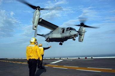 | Keywords: US Navy 050323-N-7945K-204 An MV-22 Osprey, assigned to the Argonauts of Marine Tiltrotor Operational Test and Evaluation Squadron Two Two (VMX-22). takes off from the flight deck.jpg en Atlantic Ocean Mar 23 2005 - An MV-22 Osprey assigned to the Argonauts of Marine Tiltrotor Operational Test and Evaluation Squadron Two Two VMX-22 takes off from the flight deck aboard the amphibious assault ship USS Nassau LHA 4 Nassau personnel are working with the Osprey tiltroters for the first time during a weeklong underway period The Air Department aboard Nassau spent a month preparing for the evolution by sending personnel to Chambers Field Norfolk Va to view the MV-22 Osprey during flight operations U S Navy photo by Photographer's Mate 3rd Class Andrew King RELEASED 2005-03-23 050323-N-7945K-204 Navy http //www navy mil/view_image asp id 23155 U S Navy photo by Photographer's Mate 3rd Class Andrew King PD-USGov-Military-Navy Aboard USS Nassau LHA-4 MV-22B Osprey USMC in hovering VMX-22 |