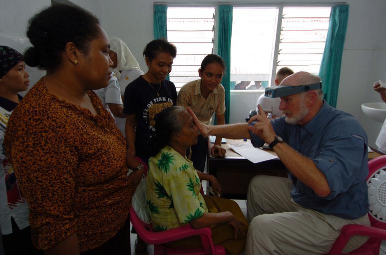 | Keywords: US Navy 050325-N-8629M-198 Dr. James Pressley, a civilian doctor from the Military Sealift Command (MSC) hospital ship USNS Mercy (T-AH 19), examines the eyes of an Indonesian woman with cataracts.jpg en Alor Indonesia Mar 25 2005 - Dr James Pressley a civilian doctor from the Military Sealift Command MSC hospital ship USNS Mercy T-AH 19 examines the eyes of an Indonesian woman with cataracts at the Kalabahi Hospital in Alor Indonesia Mercy is currently off the coast of Alor Indonesia to provide humanitarian assistance and focus medical care to thousands of people displaced by a magnitude 7 3 earthquake that struck Nov 11 2004 While ashore Mercy's crew will focus on public health primary care dental treatment preventive medicine health education and pharmaceutical support Mercy's deployment is part of the U S commitment to Southeast Asia and the Pacific Island nations U S Navy photo by Photographer's Mate 3rd Class Rebecca J Moat RELEASED 2005-03-25 050325-N-8629M-198 Navy http //www navy mil/view_image asp id 23056 U S Navy photo by Photographer's Mate 3rd Class Rebecca J Moat PD-USGov-Military-Navy Images from US Navy location Alor Indonesia Aboard USNS Mercy T-AH-19 |