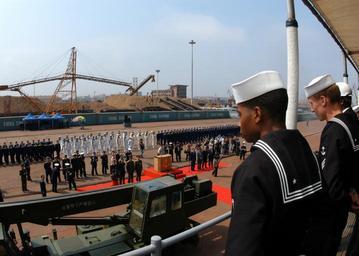 Keywords: US Navy 050328-N-7526R-009 Sailors aboard USS Blue Ridge (LCC 19) man the rails as the ship moors to the pier at Zhanjiang, People's Republic of China.jpg en Zhanjiang People's Republic of China Mar 28 2005 - Sailors aboard USS Blue Ridge LCC 19 man the rails as the ship moors to the pier at Zhanjiang People's Republic of China The Sailors and Marines from the ship and embarked staff will take an opportunity to experience the local culture and interact with their counterparts from the People's Liberation Army and Navy Blue Ridge U S Seventh Fleet command ship is forward deployed to Yokosuka Japan U S Navy photo by Journalist Seaman Apprentice Marc Rockwell-Pate RELEASED 2005-03-28 050328-N-7526R-009 Navy http //www navy mil/view_image asp id 23074 U S Navy photo by Journalist Seaman Apprentice Marc Rockwell-Pate Aboard USS Blue Ridge LCC-19 Manning the rail in the United States Navy Images from US Navy location Zhanjiang Peoples Republic Of China River PD-USGov-Military-Navy