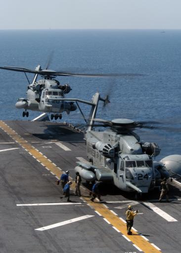 | Keywords: US Navy 050417-N-3557N-001 Two CH-53E Super Stallion helicopters attached to 26th Marine Expeditionary Unit (MEU), land on the flight deck aboard amphibious assault ship USS Kearsarge (LHD 3).jpg en Mediterranean Sea April 17 2005 - Two CH-53E Super Stallion helicopters attached to 26th Marine Expeditionary Unit MEU land on the flight deck aboard amphibious assault ship USS Kearsarge LHD 3 Kearsarge Expeditionary Strike Group is currently deployed in support of the global war on terror U S Navy photo by Photographer's Mate Airman Christopher J Newsome RELEASED 2005-04-17 050417-N-3557N-001 Navy http //www navy mil/view_image asp id 23844 U S Navy photo by Photographer's Mate Airman Christopher J Newsome PD-USGov-Military-Navy CH-53E US Marine Corps Aboard USS Kearsarge LHD-3 |