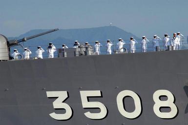 Keywords: US Navy 050503-N-4995T-029 Japanese Sailors man the rails as the Japanese Navy training ship JDS Kashima (TV 3508) pulls into Pearl Harbor, Hawaii.jpg JDS Kashima TV 3508 pulls into Pearl Harbor Hawaii The purpose of this visit is to develop the seamanship and leadership skills of Japan's future leaders as well as broadening the mutual understanding and friendship between the United States and Japan U S Navy photo by Photographer's Mate 3rd Class Victoria A Tullock RELEASED 2005-05-03 050503-N-4995T-029 Navy http //www navy mil/view_image asp id 24111 Photographer's Mate 3rd Class Victoria A Tullock U S Navy PD-USGov-Military-Navy JS Kashima TV-3508 Japanese warships at Pearl Harbor Manning the rail in the Japanese Navy 2005 Japanese Maritime Self-Defense Force Training Squadron |