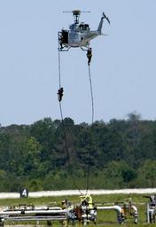 | Keywords: US Navy 050507-N-0295M-005 U.S. Marines repel from a UH-1N Huey helicopter during the Marine Air Ground Task Force (MAGTF) demonstration at the 2005 Marine Corps Air Station Cherry Point air show.jpg en Cherry Point N C May 7 2005 U S Marines repel from a UH-1N Huey helicopter during the Marine Air Ground Task Force MAGTF demonstration at the 2005 Marine Corps Air Station Cherry Point air show The MAGTF demonstration highlighted various air and ground attacks used by the Marine Corps This year's air show showcased civilian and military aircraft from the Nation's armed forces which provided many flight demonstrations and static displays U S Navy photo by Photographer s Mate 2nd Class Daniel J McLain RELEASED 2005-05-07 050507-N-0295M-005 Navy http //www navy mil/view_image asp id 24225 U S Navy photo by Photographer s Mate 2nd Class Daniel J McLain PD-USGov-Military-Navy 2005 MCAS Cherry Point Air Show Bell UH-1N Twin Huey Fast roping |