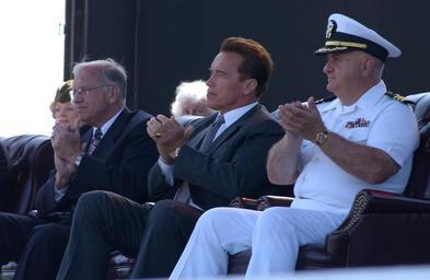 Keywords: US Navy 050529-N-5621B-032 From left, San Diego Mayor Dick Murphy, California Gov. Arnold Schwarzenegger and Cmdr. Ron Ritter applaud World War II veterans.jpg en San Diego May 29 2005 From left San Diego Mayor Dick Murphy California Gov Arnold Schwarzenegger and Cmdr Ron Ritter applaud World War II veterans during a 60th anniversary commemoration ceremony of World War II The ceremony was organized by the Department of Defense World War II 60th Anniversary Commemoration Committee to pay tribute and recognize World War II veterans for their outstanding service and sacrifice during the Memorial Day weekend U S Navy photo by Photographer's Mate 3rd Class Stefanie Broughton RELEASED 2005-05-29 050529-N-5621B-032 Navy http //www navy mil/view_image asp id 24902 U S Navy photo by Photographer's Mate 3rd Class Stefanie Broughton PD-USGov-Military-Navy Naval Base San Diego in the 2000s Arnold Schwarzenegger in 2005 Dick Murphy |