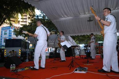 | Keywords: US Navy 050603-N-0493B-002 The Seventh Fleet Band performs at the Singapore Street Festival.jpg  en Singapore June 3 2005 - The Seventh Fleet Band Orient Express performs at the Singapore Street Festival The band is in Singapore taking part in exercise Cooperation Afloat Readiness and Training CARAT 2005 with the Republic of Singapore Navy CARAT is a regularly scheduled series of bilateral military exercises with various Southeast Asian nations designed to enhance interoperability of the respective sea services and includes a variety of operational social and community events U S Navy photo by Lt Chuck Bell RELEASED 2005-06-03 050603-N-0493B-002 Navy http //www navy mil/view_image asp id 25048 U S Navy photo by Lt Chuck Bell PD-USGov-Military-Navy Naval ships of the United States in Singapore |