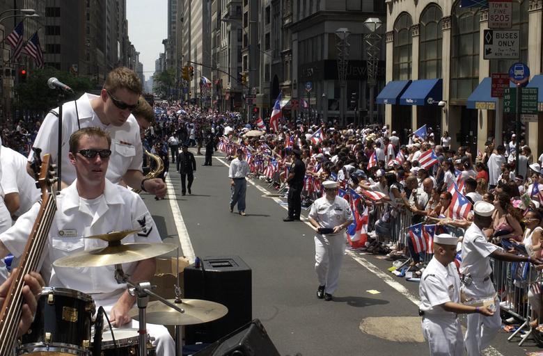 | Keywords: US Navy 050612-N-5637H-001 Navy Recruiting District New York recruiters and members of the Navy Band Rhode Island Sound, excite the crowd.jpg en New York City June 12 2005 - Navy Recruiting District New York recruiters and members of the Navy Band Rhode Island Sound excite the crowd at the 2005 National Puerto Rican Day Parade in New York City U S Navy photo by Chief Journalist John Harrington RELEASED 2005-06-12 050612-N-5637H-001 Navy http //www navy mil/view_image asp id 25260 U S Navy photo by Chief Journalist John Harrington PD-USGov-Military-Navy Military in New York Puerto Rican Day Parade |