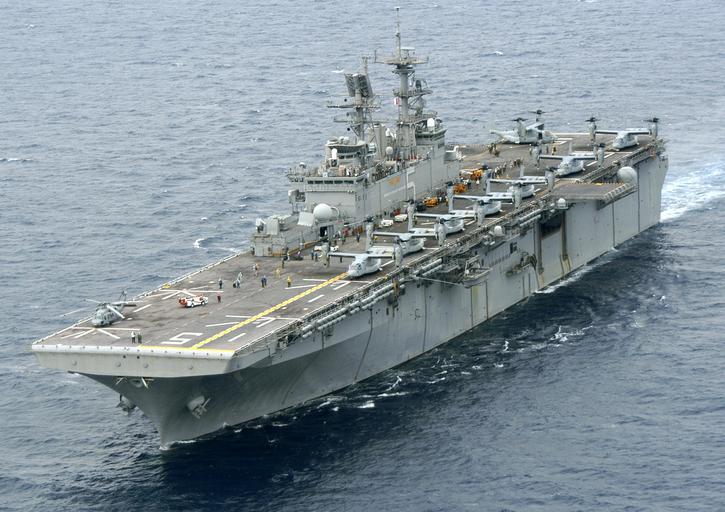 Keywords: US Navy 050618-N-8154G-026 The amphibious assault ship USS Bataan (LHD 5) shown underway with all eight MV-22 Osprey assigned to Marine Tlitrotor Operational Test and Evaluation Squadron 22 (VMX-22).jpg en Atlantic Ocean June 18 2005 The amphibious assault ship USS Bataan LHD 5 shown underway with all eight MV-22 Osprey assigned to Marine Tlitrotor Operational Test and Evaluation Squadron 22 VMX-22 turning and ready for takeoff VMX-22 is conducting the final operational test phase of the tiltrotor aircraft The MV-22 is an advanced technology vertical/short takeoff and landing VSTOL multipurpose tactical aircraft and is scheduled to replace aging CH-46E Sea Knight and CH-53D Sea Stallion helicopters currently in service U S Navy photo by Photographer s Mate Airman Jeremy L Grisham RELEASED 2005-06-18 050618-N-8154G-026 Navy http //www navy mil/view_image asp id 25390 U S Navy photo by Photographer s Mate Airman Jeremy L Grisham PD-USGov-Military-Navy General views of USS Bataan LHD-5 MV-22B Osprey on flight decks VMX-22