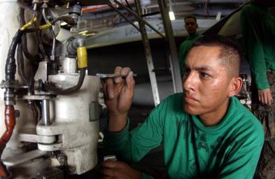 Keywords: US Navy 050623-N-0413R-071 U.S. Marine Corps Cpl. Bradley Stewart, assigned to the Red Devils of Marine Fighter Attack Squadron Two Three Two (VMFA-232), applies touch-up paint during corrosion control maintenance on the nose l.jpg en Pacific Ocean June 23 2005 U S Marine Corps Cpl Bradley Stewart assigned to the Red Devils of Marine Fighter Attack Squadron Two Three Two VMFA-232 applies touch-up paint during corrosion control maintenance on the nose landing gear of an F/A-18 Hornet in the hangar bay aboard USS Nimitz CVN 68 The Nimitz Strike Group is currently on a regularly scheduled deployment in support of the Global War on Terrorism U S Navy photo by Photographer s Mate 3rd Class Shannon E Renfroe RELEASED 2005-06-23 050623-N-0413R-071 Navy http //www navy mil/view_image asp id 25582 U S Navy photo by Photographer s Mate 3rd Class Shannon E Renfroe PD-USGov-Military-Navy Aboard USS Nimitz CVN-68 |