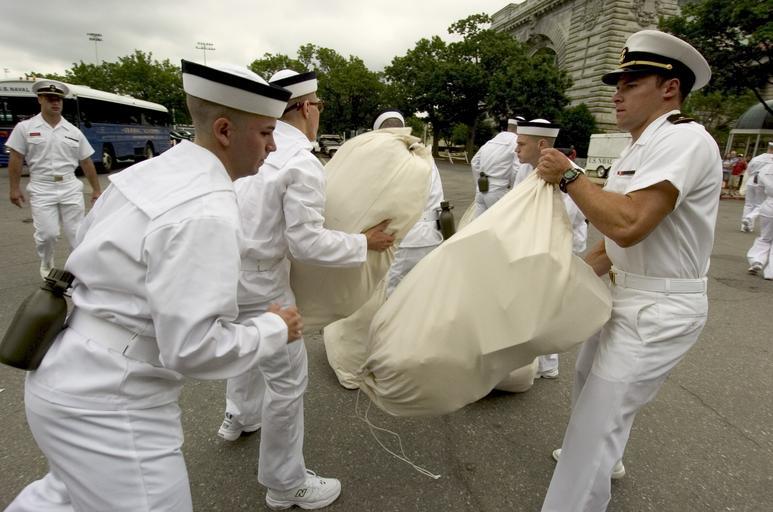 | Keywords: US Navy 050629-N-9693M-299 Prospective Midshipmen retrieve their.jpg en Annapolis Md June 29 2005 - Prospective Midshipmen retrieve their Sea Bags under instruction from a 1st Class Midshipman prior to entering Bancroft Hall at the United States Naval Academy in Annapolis Md Approximately 1200 prospective Midshipmen 4th Class Plebes reported to the Academy for Induction into the class of 2009 and the first day of Plebe summer The Plebes were cycled through a series of stations to establish medical and dental records receive uniforms complete paperwork and receive their military haircut U S Navy photo by Mr Damon J Moritz RELEASED 2005-06-29 050629-N-9693M-299 Navy http //www navy mil/view_image asp id 25762 U S Navy photo by Mr Damon J Moritz PD-USGov-Military-Navy United States Naval Academy Induction Day Sailor suits |