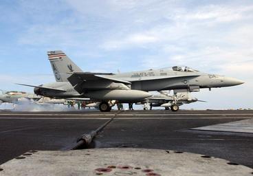 Keywords: US Navy 050714-N-5345W-065 An F-A-18C Hornet assigned to the Silver Eagles of Marine Fighter Attack Squadron One One Five (VMFA-115) crosses arresting wire number three.jpg en Atlantic Ocean July 14 2005 - An F/A-18C Hornet assigned to the Silver Eagles of Marine Fighter Attack Squadron One One Five VMFA-115 crosses arresting wire number three while performing a touch-and-go on the Nimitz-class aircraft carrier USS Harry S Truman CVN 75 Truman is currently conducting carrier qualifications sustainment operations and participating in a Joint Task Force Exercise JTFEX with USS Theodore Roosevelt CVN 71 JTFEX is a key component in the training cycle of an aircraft carrier and carrier air wing in the U S Navy Fleet Response Plan construct U S Navy photo by Photographer's Mate 3rd Class Kristopher Wilson RELEASED 2005-07-14 050714-N-5345W-065 Navy http //www navy mil/view_image asp id 27203 U S Navy photo by Photographer's Mate 3rd Class Kristopher Wilson PD-USGov-Military-Navy USS Theodore Roosevelt CVN-71 flight deck |