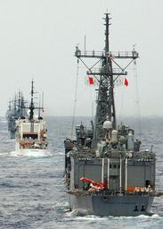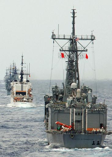 | Keywords: US Navy 050719-N-4374S-002 The guided missile frigate USS Samuel B. Roberts (FFG 58) maneuvers into a formation along with naval and coast guard units from Colombia, Chile, Ecuador, Peru and Panama during UNITAS 46-05.jpg  en Caribbean Sea July 19 2005 - The guided missile frigate USS Samuel B Roberts FFG 58 maneuvers into a formation along with naval and coast guard units from Colombia Chile Ecuador Peru and Panama during UNITAS 46-05 prior to a live-fire exercise Samuel B Roberts is part of a multinational naval and coast guard force from six nations conducting UNITAS 46-05 Pacific Phase The Colombian Navy in this year's UNITAS Pacific Phase hosts Ecuador Panama Peru and the United States During the two-week exercise participating units have the opportunity to train as unified force in all aspects of naval operations from maritime interdiction to anti-submarine and electronic warfare U S Naval Forces Southern Command sponsors UNITAS exercises with the objective to foster cooperation and develop interoperability among the navies of the region U S Navy photo by Photographer's Mate 2nd Class Michael Sandberg RELEASED 2005-07-19 050719-N-4374S-002 Navy http //www navy mil/view_image asp id 26405 U S Navy photo by Photographer's Mate 2nd Class Michael Sandberg PD-USGov-Military-Navy USS Samuel B Roberts FFG-58 International groups of naval ships UNITAS 46-05 BQM-74 Chukar |
