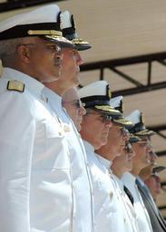 | Keywords: US Navy 050724-N-1159B-022 Commander U.S. Naval Forces Southern Command, Rear Adm. Vinson E. Smith, stands with admirals and representatives from five other nations during the closing ceremonies of UNITAS 46-05, which were held.jpg  en Cartagena Colombia July 24 2005 - Commander U S Naval Forces Southern Command Rear Adm Vinson E Smith stands with admirals and representatives from five other nations during the closing ceremonies of UNITAS 46-05 which were held at the Colombian Naval Academy Colombia was the host nation for UNITAS 46-05 which included naval and coast guard units from the United States Chile Peru Ecuador and Panama U S Naval Forces Southern Command sponsored UNITAS with the objective of increasing interoperability and fostering cooperation among naval forces in the region During the two-week exercise in July participating forces had the opportunity to test their skills in areas such as anti-submarine warfare air defense maritime interdiction operations and surface gunnery U S Navy photo by Journalist 1st Class Brian Brannon RELEASED 2005-07-24 050724-N-1159B-022 Navy http //www navy mil/view_image asp id 26564 U S Navy photo by Journalist 1st Class Brian Brannon PD-USGov-Military-Navy Images from US Navy location Cartagena Colombia |