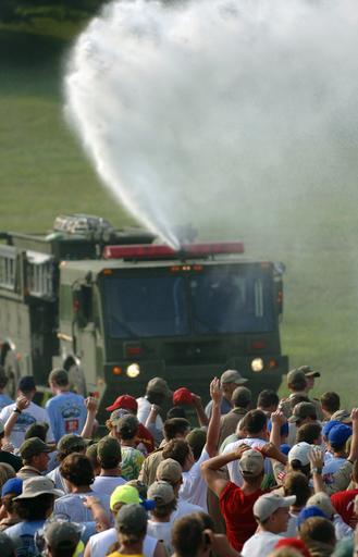 | Keywords: US Navy 050726-N-9769P-009 A U.S. Army fire truck provides relief from the heat as thousands of Boy Scouts stand hoping to hear the President of the United Stated speak at their opening ceremony as part of the National Scout Ja.jpg en Fort A P Hill Va July 26 2005 A U S Army fire truck provides relief from the heat as thousands of Boy Scouts stand hoping to hear the President of the United Stated speak at their opening ceremony as part of the National Scout Jamboree held at Fort A P Hill Va Held every four years thousands of Boy Scouts assemble from across the United States and the World for nine days to take part in the National Scout Jamboree to camp earn merit badges and provide an educational program to build character train for responsibilities and promote physical fitness This year's jamboree is held from July 25 2005 to Aug 3 2005 U S Navy photo by Photographer s Mate 2nd Class Jayme Pastoric RELEASED 2005-07-26 050726-N-9769P-009 Navy http //www navy mil/view_image asp id 26672 U S Navy photo by Photographer s Mate 2nd Class Jayme Pastoric PD-USGov-Military-Navy 2005 National Scout Jamboree Green fire engines |