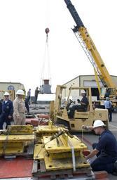 | Keywords: US Navy 050805-N-1995C-054 ROV Super Scorpio is prepared for loading on an Air Force C-5 Galaxy.jpg en Naval Air Station North Island San Diego Calif August 5 2005 - Sailors assigned to the U S Navy's Unmanned Vehicle UMV Detachment located at Naval Air Station North Island make preparations to load Super Scorpio a robotic rescue vehicle aboard an Air Force C-5 Galaxy aircraft The Navy is transporting two of the remotely operated vehicles in an effort to assist the rescue of seven Russian Sailors trapped on the ocean floor in a mini-submarine off the Kamchatka Peninsula The Super Scorpios and a team of U S Navy technicians are to be flown from San Diego to Petropavolvsk and then transported by truck to be embarked on a Russian ship before making a descent to the stranded submarine U S Navy photo by Chief Photographer's Mate Steven Cooke RELEASED 2005-08-05 050805-N-1995C-054 Navy http //www navy mil/view_image asp id 26909 U S Navy photo by Chief Photographer's Mate Steven Cooke PD-USGov-Military-Navy Scorpio ROV at Naval Air Station North Island Link-Belt Construction Equipment Cranes |