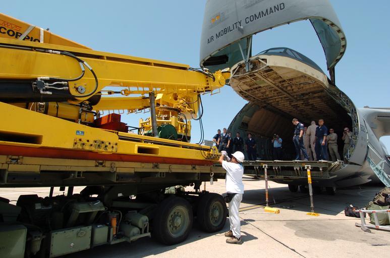 | Keywords: US Navy 050805-N-8629M-106 ROV Super Scorpio is loaded aboard an Air Force C-5.jpg en Naval Air Station North Island San Diego Calif Aug 5 2005 Sailors assigned to the U S Navy's Deep Submergence Unit Naval Base Coronado make preparations to load Super Scorpio a robotic rescue vehicle aboard an Air Force C-5 Galaxy aircraft The Navy is transporting two of the remotely operated vehicles in an effort to assist the rescue of seven Russian Sailors trapped on the ocean floor in a mini-submarine off the Kamchatka Peninsula The Super Scorpios and a team of U S Navy technicians are to be flown from San Diego to Petropavolvsk and then transported by truck to be embarked on a Russian ship before making a descent to the stranded submarine U S Navy photo by Photographer's Mate 3rd Class Rebecca J Moat RELEASED 2005-08-05 050805-N-8629M-106 Navy http //www navy mil/view_image asp id 26915 U S Navy photo by Photographer's Mate 3rd Class Rebecca J Moat PD-USGov-Military-Navy Scorpio ROV at Naval Air Station North Island Transport of vehicles by C-5 Galaxy Lockheed C-5 Galaxy nose loading doors |