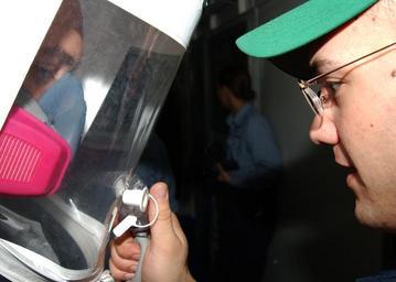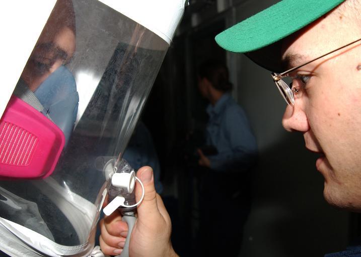 | Keywords: US Navy 050806-N-3293G-019 Boatswain's Mate 2nd Class Robert Persi conducts a respiratory fitting test on Sailors aboard the amphibious assault ship USS Tarawa (LHA 1).jpg en Celebes Sea Aug 6 2005 - Boatswain's Mate 2nd Class Robert Persi conducts a respiratory fitting test on Sailors aboard the amphibious assault ship USS Tarawa LHA 1 Petty Officer Persi is spraying saccharine a harmless substance into the hood to test for leaks while Sailors are being fitted for correct size Saccharine produces a harmless odor when inhaled Tarawa is the flagship for Expeditionary Strike Group One ESG-1 currently on a regularly scheduled Western Pacific deployment in support of the Global War on Terrorism U S Navy photo by Photographer s Mate Airman Apprentice Shannon K Garcia RELEASED 2005-08-06 050806-N-3293G-019 Navy http //www navy mil/view_image asp id 26955 U S Navy photo by Photographer s Mate Airman Apprentice Shannon K Garcia PD-USGov-Military-Navy Images from US Navy location Celebes Sea |