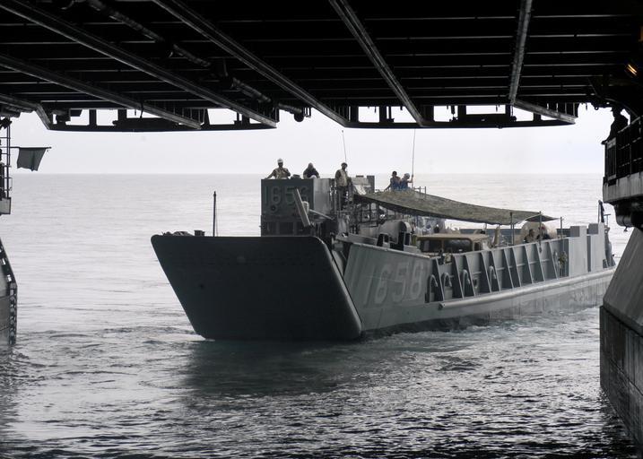 | Keywords: US Navy 050831-N-1467R-024 A Landing Craft, Utility (LCU) assigned Assault Craft Unit Two (ACU-2), departs the well deck of the amphibious assault ship USS Bataan (LHD 5) bound for New Orleans.jpg en Gulf of Mexico Aug 31 2005 - A Landing Craft Utility LCU assigned Assault Craft Unit Two ACU-2 departs the well deck of the amphibious assault ship USS Bataan LHD 5 bound for New Orleans The LCU is loaded with sandbags water a small flat bottom boat 300 lifejackets a High Mobility Multipurpose Wheeled Vehicle HMMWV and enough supplies to last ten days as part of the relief efforts after Hurricane Katrina hit the Southern Gulf Coast States Bataan's involvement in the humanitarian assistance operations led by the Federal Emergency Management Agency FEMA in conjunction with the Department of Defense Bataan has been tasked to be the Maritime Disaster Relief Coordinator for the Navy's role in the relief efforts U S Navy photo by Photographer's Mate Airman Pedro A Rodriguez RELEASED 2005-08-31 050831-N-1467R-024 Navy http //www navy mil/view_image asp id 27539 U S Navy photo by Photographer's Mate Airman Pedro A Rodriguez PD-USGov-Military-Navy Aboard USS Bataan LHD-5 LCU 1656 ship 1970 Well decks |