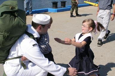 Keywords: US Navy 050908-N-0653J-004 A Sailor assigned to the Los Angeles-class attack submarine USS Augusta (SSN 710) welcomes family members on the pier after returning home from deployment.jpg en New London Conn Sept 8 2005 A Sailor assigned to the Los Angeles-class attack submarine USS Augusta SSN 710 welcomes family members on the pier after returning home from deployment Augusta arrived home to Submarine Base New London Conn after a routine six-month deployment to the Mediterranean Sea supporting the Global War on Terrorism U S Navy photo by Lt Mark Jones RELEASED 2005-09-08 050908-N-0653J-004 Navy http //www navy mil/view_image asp id 27993 U S Navy photo by Lt Mark Jones PD-USGov-Military-Navy Naval Submarine Base New London USS Augusta SSN-710 |