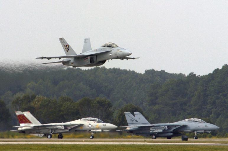| Keywords: US Navy 050916-N-0295M-136 An F-A-18F Super Hornet flies over two F-14 Tomcats during the 2005 Naval Air Station Oceana Air Show.jpg en Virginia Beach Va Sept 16 2005 - An F/A-18F Super Hornet assigned to the Gladiators of Strike Fighter Squadron One Zero Six VFA-106 flies over two F-14 Tomcats during the 2005 Naval Air Station Oceana Air Show The air show held Sept 16-18th showcased civilian and military aircraft from the Nation's armed forces which provided many flight demonstrations and static displays U S Navy photo by Photographer's Mate 2nd Class Daniel J McLain RELEASED 2005-09-16 050916-N-0295M-136 Navy http //www navy mil/view_image asp id 28434 U S Navy photo by Photographer's Mate 2nd Class Daniel J McLain PD-USGov-Military-Navy F-14B Tomcat in flight Fighter Squadron 32 United States Navy F-14D Tomcat Fighter Squadron 101 United States Navy F/A-18F Super Hornet in flight Strike Fighter Squadron 106 United States Navy 2005 Naval Air Station Oceana Air Show |