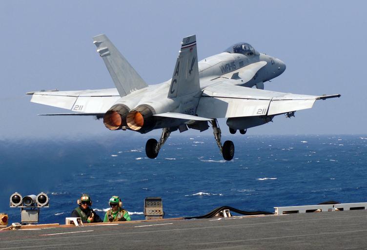 Keywords: US Navy 051015-N-5345W-051 An F-A-18A- Hornet, assigned to the Silver Eagles of Marine Fighter Attack Squadron One One Five (VMFA-115), launches during flight operations.jpg en Atlantic Ocean Oct 15 2005 An F/A-18A+ Hornet assigned to the Silver Eagles of Marine Fighter Attack Squadron One One Five VMFA-115 launches during flight operations aboard the Nimitz-class aircraft carrier USS Harry S Truman CVN 75 Truman is currently conducting carrier qualifications and sustainment training with embarked Carrier Air Wing Three CVW-3 off the East Coast of the United States U S Navy photo by Photographer's Mate 3rd Class Kristopher Wilson RELEASED 2005-10-15 051015-N-5345W-051 Navy http //www navy mil/view_image asp id 29045 U S Navy photo by Photographer's Mate 3rd Class Kristopher Wilson PD-USGov-Military-Navy F/A-18A Hornet in flight Aboard USS Harry S Truman CVN-75 F/A-18 Hornet aircraft carrier launches |