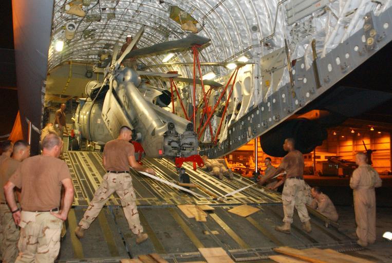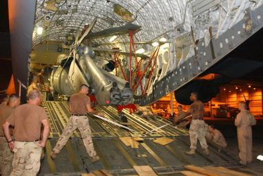 Keywords: US Navy 051015-N-5863B-002 U.S. Navy helicopter loaded onto transport aircraft bound for Pakistan earthquake relief efforts.jpg en Manama Bahrain Oct 15 2005 - Aviation Structural Mechanic Devon Kimble a native of Denver Colo and Aviation Machinist Mate Roderick Woods a native of Poplar Bluff Mo control an MH-60S Seahawk helicopter as it is loaded onto a U S Air Force C-17 Globemaster III Oct 15 The Seahawk belonging to Helicopter Sea Combat Squadron Two Six HSC-26 will help deliver medical supplies water and tents to earthquake victims in Pakistan In addition to providing support as part of maritime security operations in the region the squadron will deploy 25 Sailors and two MH-60S helicopters to help those in need in Pakistan The United States government is participating in a multinational humanitarian assistance and support effort lead by the Pakistani Government to bring aid to victims of the devastating earthquake that struck the region Oct 8 2005 U S Navy photo by Photographer s Mate 2nd Class Kim Bennett RELEASED 2005-10-15 051015-N-5863B-002 Navy http //www navy mil/view_image asp id 28935 U S Navy photo by Photographer s Mate 2nd Class Kim Bennett PD-USGov-Military-Navy 2005 Kashmir earthquake relief efforts US Navy in Manama Bahrain MH-60S Seahawk Transport of helicopters by Boeing C-17 Globemaster III Helicopter Sea Combat Squadron 26 United States Navy |