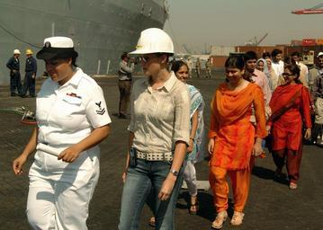 | Keywords: US Navy 051024-N-0716S-009 U.S. Navy Journalist 2nd Class Rebekah Adler leads a group of young Pakistanis for a tour of the dock landing ship USS Pearl Harbor (LSD 52) in Karachi, Pakistan.jpg en Karachi Pakistan Oct 24 2005 U S Navy Journalist 2nd Class Rebekah Adler leads a group of young Pakistanis for a tour of the dock landing ship USS Pearl Harbor LSD 52 in Karachi Pakistan Pearl Harbor carried 140 tons of relief supplies to Karachi in support of Pakistan's relief effort in the northern part of that country The United States is participating in a multinational assistance and support effort led by the Pakistani Government to bring aid to the victims of the devastating earthquake that struck Pakistan on October 8 2005 U S Navy photo by Photographer s Mate 3rd Class Tony Spiker RELEASED 2005-10-24 051024-N-0716S-009 Navy http //www navy mil/view_image asp id 29215 U S Navy photo by Photographer s Mate 3rd Class Tony Spiker PD-USGov-Military-Navy 2005 Kashmir earthquake relief efforts Karachi Aboard USS Pearl Harbor LSD-52 |
