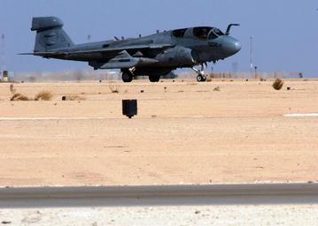 Keywords: US Navy 051114-N-9362D-015 An EA-6B Prowler, assigned to the Shadowhawks of Electronic Attack Squadron One Four One (VAQ-141), taxis down the runway at the Al Asad Air Base.jpg en Al Asad Iraq Nov 14 2005 - An EA-6B Prowler assigned to the Shadowhawks of Electronic Attack Squadron One Four One VAQ-141 taxis down the runway at the Al Asad Air Base A detachment of the Shadowhawks is stationed at Al Asad flying missions in support of the Global War on Terrorism VAQ-141 is assigned to Carrier Air Wing Eight CVW-8 currently embarked aboard USS Theodore Roosevelt CVN 71 U S Navy photo by Photographer's Mate 3rd Class Randall Damm RELEASED 2005-11-14 051114-N-9362D-015 Navy http //www navy mil/view_image asp id 30146 U S Navy photo by Photographer's Mate 3rd Class Randall Damm PD-USGov-Military-Navy Al Asad Airbase Military aircraft in the Iraq War Grumman EA-6 Prowler Aboard USS Theodore Roosevelt CVN-71 Electronic Attack Squadron 141 United States Navy |