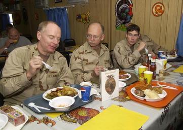 Keywords: US Navy 051124-N-8055R-034 Commander Navy Reserve Forces celebrated Thanksgiving with Reserve Forces in Kuwait.jpg en Ali Al-Salem Kuwait Nov 24 2005 - Chief of Navy Reserve Commander Navy Reserve Force Vice Adm John G Cotton seated far left enjoys Thanksgiving Day celebrations with sailors from Naval Construction Battalion Twenty Two NMCB-22 and Navy Customs Battalion Papa at the U S Army s Life Support Area LSA Dining Facility DFAC in Kuwait Navy Customs Battalion PAPA is performing duties for the U S Army throughout Kuwait Iraq in support of Operation Iraqi Freedom U S Navy photo by Photographer s Mate 1st Class Lou Rosales RELEASED 2005-11-24 051124-N-8055R-034 Navy http //www navy mil/view_image asp id 30142 U S Navy photo by Photographer s Mate 1st Class Lou Rosales PD-USGov-Military-Navy Ali Al Salem Air Base John G Cotton |