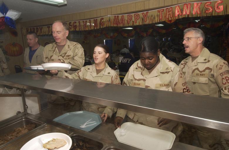 Keywords: US Navy 051124-N-8055R-031 Commander Navy Reserve Forces celebrated Thanksgiving with Reserve Forces in Kuwait.jpg en Ali Al-Salem Kuwait Nov 24 2005 - Chief of Navy Reserve Commander Navy Reserve Force Vice Adm John G Cotton left enjoys Thanksgiving Day celebrations with sailors from Naval Construction Battalion Twenty Two NMCB-22 and Navy Customs Battalion Papa at the U S Army s Life Support Area LSA Dining Facility DFAC in Kuwait Navy Customs Battalion PAPA is performing duties for the U S Army throughout Kuwait Iraq in support of Operation Iraqi Freedom U S Navy photo by Photographer s Mate 1st Class Lou Rosales RELEASED 2005-11-24 051124-N-8055R-031 Navy http //www navy mil/view_image asp id 30143 U S Navy photo by Photographer s Mate 1st Class Lou Rosales PD-USGov-Military-Navy Ali Al Salem Air Base John G Cotton |