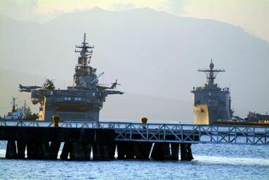 Keywords: US Navy 060217-N-4772B-192 The dock landing ship USS Harpers Ferry (LSD 49), right, and amphibious assault ship USS Essex (LHD 2) prepare to get underway shortly after arriving in Subic Bay, Philippines.jpg en Subic Bay Philippines Feb 17 2006 - The dock landing ship USS Harpers Ferry LSD 49 right and amphibious assault ship USS Essex LHD 2 prepare to get underway shortly after arriving in Subic Bay Philippines Both ships were ordered back to sea and are en route to the Philippine Island of Leyte to provide much needed humanitarian assistance for the victims of a devastating landslide Both ships are part of the Forward Deployed Amphibious Ready Group ARG the Navy s only forward-deployed amphibious force homeported in Sasebo Japan U S Navy photo by Journalist 2nd Class Brian P Biller RELEASED 2006-02-17 060217-N-4772B-192 Navy http //www navy mil/view_image asp id 32056 U S Navy photo by Journalist 2nd Class Brian P Biller PD-USGov-Military-Navy Images from US Navy location Subic Bay Republic of the Philippines General views of USS Essex LHD-2 Aboard USS Harpers Ferry LSD-49 |