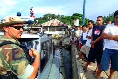 Keywords: US Navy 060220-N-4772B-436 Hospital Corpsman 2nd Class Leonard Ray talks with local villagers from an 11 meter Rigid Hull Inflatable Boat (RHIB) deployed from the dock landing ship USS Harpers Ferry (LSD 49).jpg en Leloan Republic of the Philippines Feb 20 2006 - Hospital Corpsman 2nd Class Leonard Ray talks with local villagers from an 11 meter Rigid Hull Inflatable Boat RHIB deployed from the dock landing ship USS Harpers Ferry LSD 49 during a beach survey of the area Harpers Ferry and the amphibious assault ship USS Essex LHD 2 are providing humanitarian assistance to victims in the Saint Bernard Municipality where the town of Guinsahugon located in the southern part of the island was completely devastated during a Feb 17 landslide U S Navy photo by Journalist 2nd Class Brian P Biller RELEASED 2006-02-20 060220-N-4772B-436 Navy http //www navy mil/view_image asp id 32098 U S Navy photo by Journalist 2nd Class Brian P Biller PD-USGov-Military-Navy Images from US Navy location Leloan Republic of the Philippines Rigid-hulled inflatable boats Aboard USS Harpers Ferry LSD-49 |