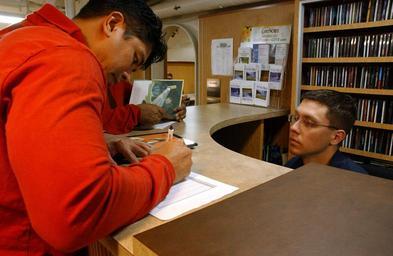 Keywords: US Navy 060225-N-7711S-109 Master Chief Aviation Ordnanceman Patrick Ponciano checks out a book from the library aboard the Nimitz-class aircraft carrier USS Ronald Reagan (CVN 76) to read to his children for the United Through.jpg en Persian Gulf Feb 25 2006 - Master Chief Aviation Ordnanceman Patrick Ponciano checks out a book from the library aboard the Nimitz-class aircraft carrier USS Ronald Reagan CVN 76 to read to his children for the United Through Reading UTR program This program allows deployed Sailors to read books on video and send home to their children Reagan and embarked Carrier Air Wing One Four CVW-14 are currently deployed on her maiden deployment conducting Maritime Security Operations MSO in the region and participating in the global war on terrorism U S Navy photo by Photographer's Mate Airman Christine Singh RELEASED 2006-02-25 060225-N-7711S-109 Navy http //www navy mil/view_image asp id 32322 U S Navy photo PD-USGov-Military-Navy Aviation Ordnanceman Entertainment aboard USS Ronald Reagan CVN-76 |