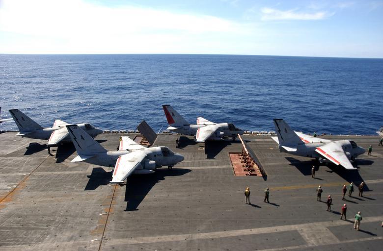 | Keywords: US Navy 060309-N-7241L-004 Four S-3B Vikings assigned to the.jpg en Atlantic Ocean March 9 2006 Four S-3B Vikings assigned to the Scouts of Sea Control Squadron Two Four VS-24 are spotted in launch position aboard the Nimitz-class aircraft carrier USS Theodore Roosevelt CVN 71 The squadron is disembarking the ship enroute to their homeport at Naval Air Station Jacksonville The Roosevelt is currently underway on a regularly scheduled deployment supporting maritime security operations U S Navy photo by Photographer's Mate Airman Apprentice Nathan Laird RELEASED 2006-03-09 060309-N-7241L-004 Navy http //www navy mil/view_image asp id 32618 U S Navy photo by Photographer's Mate Airman Apprentice Nathan Laird PD-USGov-Military-Navy S-3B Viking Sea Control Squadron 24 United States Navy USS Theodore Roosevelt CVN-71 flight deck Photographs by Nathan Laird |