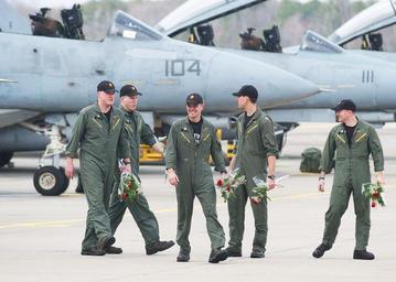 Keywords: US Navy 060310-N-0194K-004 Pilots assigned to the Tomcatters of Fighter Squadron Three One (VF-31) anxiously await family and friends attending the homecoming celebration at naval Air Station Oceana.jpg en Virginia Beach Va March 10 2006 - Pilots assigned to the Tomcatters of Fighter Squadron Three One VF-31 anxiously await family and friends attending the homecoming celebration at naval Air Station Oceana VF-31 and VF-213 completed their final deployment flying the F-14 Tomcat For the past 30 years the F-14 Tomcat has assured U S air superiority playing a key role in ensuring victory and preserving peace around the world The F-14 Tomcat will be removed from service and officially stricken from the inventory in September of 2006 U S Navy photo by Photographer's Mate 2nd Class Steven King RELEASED 2006-03-10 060310-N-0194K-004 Navy http //www navy mil/view_image asp id 32668 U S Navy photo by Photographer's Mate 2nd Class Steven King PD-USGov-Military-Navy People at Naval Air Station Oceana Fighter Squadron 31 United States Navy United States Naval aviators Strike Fighter Squadron 31 United States Navy |