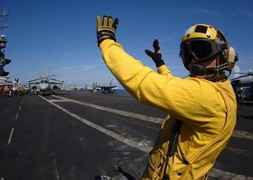Keywords: US Navy 060313-N-7090S-005 An aviation boatswain's mate directs a S-3B Viking to a catapult in preparation for launch from the flight deck.jpg en Atlantic Ocean March 13 2006 - An aviation boatswain's mate directs a S-3B Viking assigned to the Maulers of Sea Control Squadron Three Two VS-32 to a catapult in preparation for launch from the flight deck aboard the nuclear powered aircraft carrier USS Enterprise CVN 65 Enterprise and embarked Carrier Air Wing One CVW-1 are currently underway conducting Composite Training Unit Exercise COMPTUEX U S Navy photo by Photographer's Mate Airman Jhi L Scott RELEASED 2006-03-13 060313-N-7090S-005 Navy http //www navy mil/view_image asp id 32801 U S Navy photo by Photographer's Mate Airman Jhi L Scott PD-USGov-Military-Navy Aboard USS Enterprise CVN-65 Aviation Boatswain's Mates Handlers |