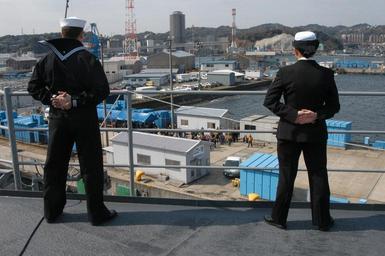 Keywords: US Navy 060324-N-6997B-094 Sailors man the rails aboard the amphibious command ship USS Blue Ridge (LCC 19) as the ship pulls into its homeport after having completed a nine-week deployment.jpg en Yokosuka Japan March 24 2006 - Sailors man the rails aboard the amphibious command ship USS Blue Ridge LCC 19 as the ship pulls into its homeport after having completed a nine-week deployment in the 7th Fleet area of operation AOR Blue Ridge is the 7th Fleet command ship forward deployed to Yokosuka Japan U S Navy photo by Photographer's Mate 2nd Class Keith Bryska RELEASED 2006-03-24 060324-N-6997B-094 Navy http //www navy mil/view_image asp id 33099 U S Navy photo by Photographer's Mate 2nd Class Keith Bryska PD-USGov-Military-Navy United States Fleet Activities Yokosuka Aboard USS Blue Ridge LCC-19 Manning the rail in the United States Navy |