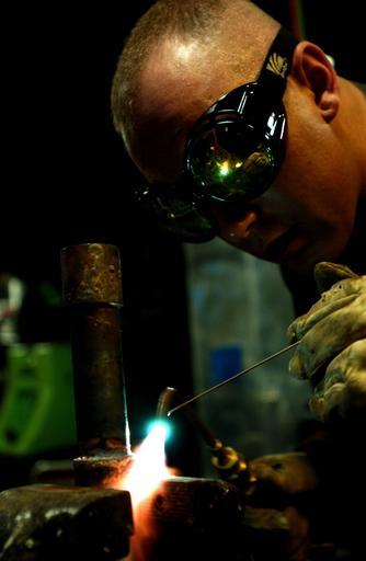 | Keywords: US Navy 060405-N-4133B-126 Hull Maintenance Technician Fireman Jayson Minor assigned aboard the Nimitz-class aircraft carrier USS Ronald Reagan (CVN 76) brazes tubing in the ship^rsquo,s pipe shop.jpg en Persian Gulf April 5 2006 - Hull Maintenance Technician Fireman Jayson Minor assigned aboard the Nimitz-class aircraft carrier USS Ronald Reagan CVN 76 brazes tubing in the ship s pipe shop Reagan and embarked carrier Air Wing One Four CVW-14 are currently deployed as part of a routine rotation of U S maritime forces in support of the global war on terrorism as well as conducting Maritime Security Operations MSO in the region MSO set the conditions for security and stability in the maritime environment as well as complement the counter-terrorism and security efforts of regional nations U S Navy photo by Photographer's Mate Airman Apprentice Benjamin Brossard RELEASED 2006-04-05 060405-N-4133B-126 Navy http //www navy mil/view_image asp id 33371 U S Navy photo by Photographer's Mate Airman Apprentice Benjamin Brossard PD-USGov-Military-Navy Brazing Maintenance on USS Ronald Reagan CVN-76 Hull Maintenance Technician United States Navy |