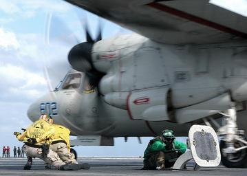 Keywords: US Navy 060410-N-6433N-069 Flight Deck crew members signal for a safe launch of an E-2C Hawkeye assigned to the.jpg en Atlantic Ocean April 10 2006 - Flight Deck crew members signal for a safe launch of an E-2C Hawkeye assigned to the Bluetails of Carrier Airborne Early Warning Squadron One Two One VAW-121 aboard the Nimitz-class aircraft carrier USS George Washington CVN 73 George Washington Carrier Strike Group is currently participating in Partnership of the Americas a maritime training and readiness deployment of the U S Naval Forces with Caribbean and Latin American countries in support of the U S Southern Command SOUTHCOM objectives for enhanced maritime security U S Navy photo by Photographer's Mate Airman Rex Nelson RELEASED 2006-04-10 060410-N-6433N-069 Navy http //www navy mil/view_image asp id 33472 U S Navy photo by Photographer's Mate Airman Rex Nelson PD-USGov-Military-Navy Aboard USS George Washington CVN-73 Northrop Grumman E-2C Hawkeye aircraft carrier take-offs Airborne Early Warning Squadron 121 United States Navy |