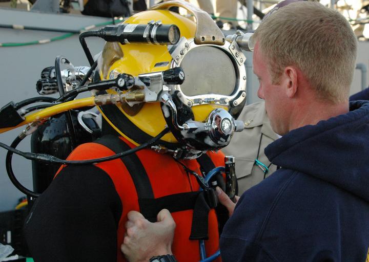 | Keywords: US Navy 060411-N-6764G-115 Sonar Technician Surface 3rd Class Ryan Travis is suited for his Master Diver qualification pre-screening exercise aboard Landing Craft Unit (LCU-1647) at Naval Amphibious Base Little Creek.jpg  en Little Creek Va April 11 2006 - Sonar Technician Surface 3rd Class Ryan Travis is suited for his Master Diver qualification pre-screening exercise aboard Landing Craft Unit LCU-1647 at Naval Amphibious Base Little Creek Mobile Diving and Salvage Unit Two MDSU-2 are always looking for candidates in the Navy to become Master Divers U S Navy photo by Photographer's Mate Airman Brian Goodwin RELEASED 2006-04-11 060411-N-6764G-115 Navy http //www navy mil/view_image asp id 33581 U S Navy photo by Photographer's Mate Airman Brian Goodwin PD-USGov-Military-Navy Naval Amphibious Base Little Creek Lightweight demand diving helmets LCU 1647 ship 1970 Diving lights Underwater video equipment |