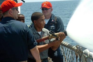 Keywords: US Navy 060421-N-5307M-300 Fidelin Silfa-Florian of the Dominican Republic Marines practices hose handling techniques and vari-nozzle operations aboard the guided missile destroyer USS Stout (DDG 55).jpg en Caribbean Sea April 21 2006 - Fidelin Silfa-Florian of the Dominican Republic Marines practices hose handling techniques and vari-nozzle operations aboard the guided missile destroyer USS Stout DDG 55 Stout is part of the George Washington Carrier Strike group currently participating in Partnership of the Americas a maritime training and readiness deployment of the U S Naval Forces with Caribbean and Latin American countries in support of the U S Southern Command SOUTHCOM objectives for enhanced maritime security U S Navy photo by Photographer s Mate Airman Tristian Miller RELEASED 2006-04-21 060421-N-5307M-300 Navy http //www navy mil/view_image asp id 33795 U S Navy photo by Photographer s Mate Airman Tristian Miller PD-USGov-Military-Navy USS Stout DDG-55 |