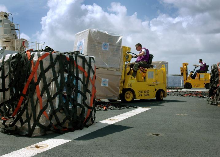 | Keywords: US Navy 060509-N-3714J-046 Crew members aboard Military Sealift Command (MSC) hospital ship USNS Mercy (T-AH 19) prepare boxes to be air lifted in support of Project Handclasp.jpg  en Pacific Ocean May 9 2006 - Crew members aboard Military Sealift Command MSC hospital ship USNS Mercy T-AH 19 prepare boxes to be air lifted in support of Project Handclasp from Mercy is on a five-month deployment during which it will visit areas of South Asia Southeast Asia and the Pacific Islands where its crew and several health and civic-related organizations will work together to aid in humanitarian assistance and civic efforts Project Handclasp accepts and transports educational humanitarian and goodwill material overseas on a space-available basis in U S Navy ships Materials are distributed directly to needy recipients by U S service personnel stationed in overseas areas or embarked on U S Navy ships which visit these areas Mercy is uniquely capable of supporting medical and humanitarian assistance needs and is configured with special medical equipment and a robust multi-specialized medical team to provide a range of services ashore as well as aboard the ship The medical staff is augmented with an assistance crew many of whom are part of non-governmental organizations which have significant medical capabilities U S Navy photo by Photographer's Mate 2nd Class Erika N Jones RELEASED 2006-05-09 060509-N-3714J-046 Navy http //www navy mil/view_image asp id 34355 U S Navy photo by Photographer's Mate 2nd Class Erika N Jones PD-USGov-Military-Navy Aboard USNS Mercy T-AH-19 Project Handclasp United States Navy |