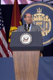 | Keywords: US Navy 060526-N-3642E-009 Secretary of the Navy (SECNAV) Dr. Donald C. Winter delivers his opening remarks and introduces Vice President Dick Cheney during the U.S. Naval Academy class of 2006.jpg en Annapolis Md May 26 2006 - Secretary of the Navy SECNAV Dr Donald C Winter delivers his opening remarks and introduces Vice President Dick Cheney during the U S Naval Academy class of 2006 Graduation and Commissioning Ceremony Nine hundred-eighty Midshipmen graduated from the U S Naval Academy and became commissioned officers in the U S Navy and Marine Corps Vice President Dick Cheney delivered the commencement address and personally greeted each graduate during the ceremony U S Navy photo by Photographer s Mate 1st Class Shawn P Eklund RELEASED 2006-05-26 060526-N-3642E-009 Navy http //www navy mil/view_image asp id 35123 U S Navy photo by Photographer s Mate 1st Class Shawn P Eklund PD-USGov-Military-Navy Taken with Nikon D2X Donald C Winter Graduation and Commissioning Ceremony May 26 2006 |