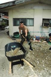 Keywords: US Navy 060528-N-1577S-054 Constructionman Todd Beeler assigned to Naval Mobile Construction Battalion Four Zero (NMCB-40) shovels dirt into a wheelbarrow in preparation to replace a walkway at Zamboanga Medical Center.jpg en Zamboanga Philippines May 28 2006 - Constructionman Todd Beeler assigned to Naval Mobile Construction Battalion Four Zero NMCB-40 shovels dirt into a wheelbarrow in preparation to replace a walkway at Zamboanga Medical Center NMCB-40 is attached to the Military Sealift Command MSC hospital ship USNS Mercy T-AH 19 participating in civic efforts on a five-month deployment to South Asia Southeast Asia and the Pacific Islands The medical crew aboard Mercy will provide general and ophthalmology surgery basic medical evaluation and treatment preventive medicine treatment dental screenings and treatment optometry screenings eyewear distribution public health training and veterinary services as requested by the host nations Like all U S Naval forces Mercy is able to rapidly respond to a range of situations on short notice Mercy is uniquely capable of supporting medical and humanitarian assistance needs and is configured with special medical equipment and a robust multi-specialized medical team who can provide a range of services ashore as well as aboard the ship The medical staff is augmented with an assistance crew many of whom are part of non-governmental organizations which have significant medical capabilities U S Navy photo by Photographer's Mate 3rd Class Timothy F Sosa RELEASED 2006-05-28 060528-N-1577S-054 Navy http //www navy mil/view_image asp id 35195 U S Navy photo by Photographer's Mate 3rd Class Timothy F Sosa PD-USGov-Military-Navy United States Navy in Zamboanga City |
